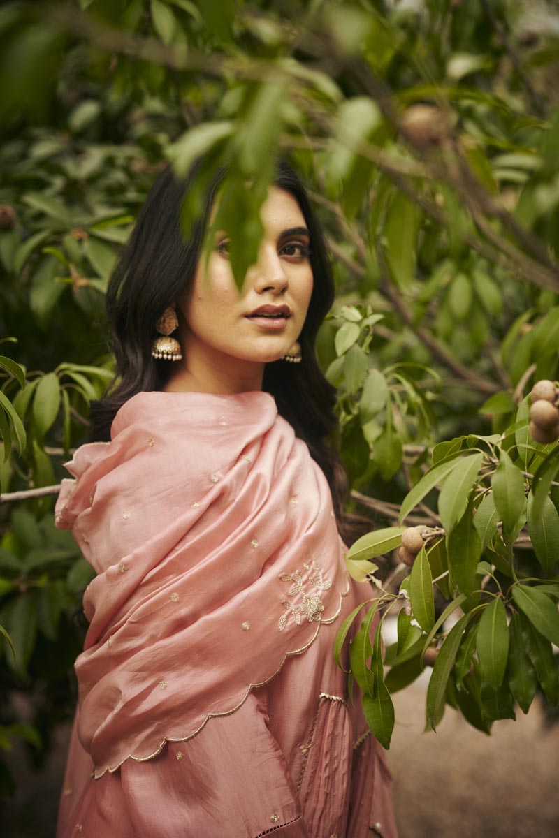 Pastel Pink Mid pleats Kurta paired with palazzo and dupatta