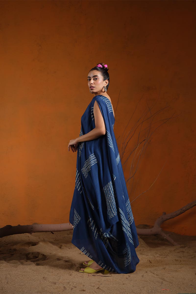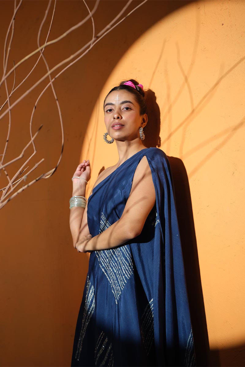 Bright Pink Shibori Print One shoulder assymetric cut dress