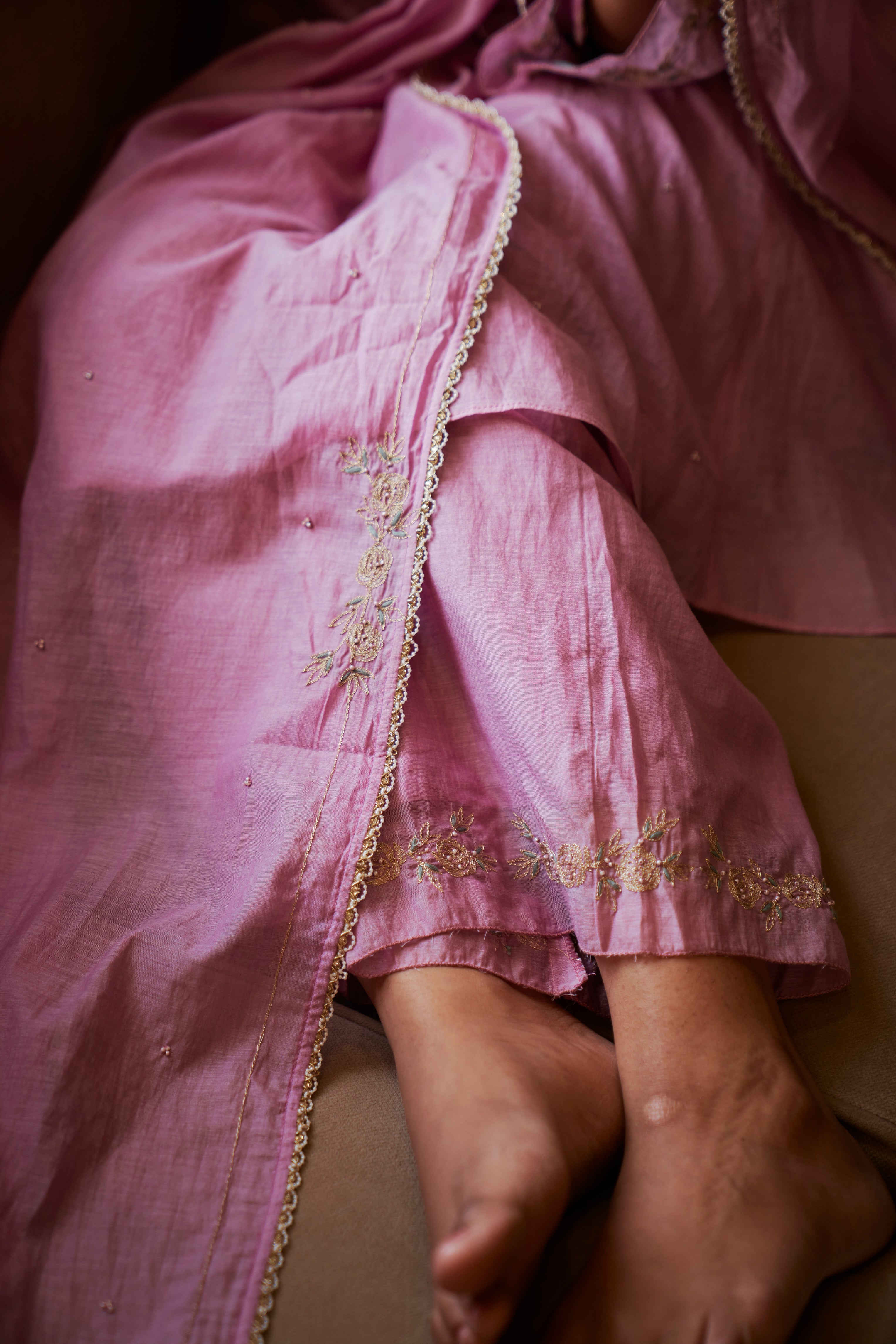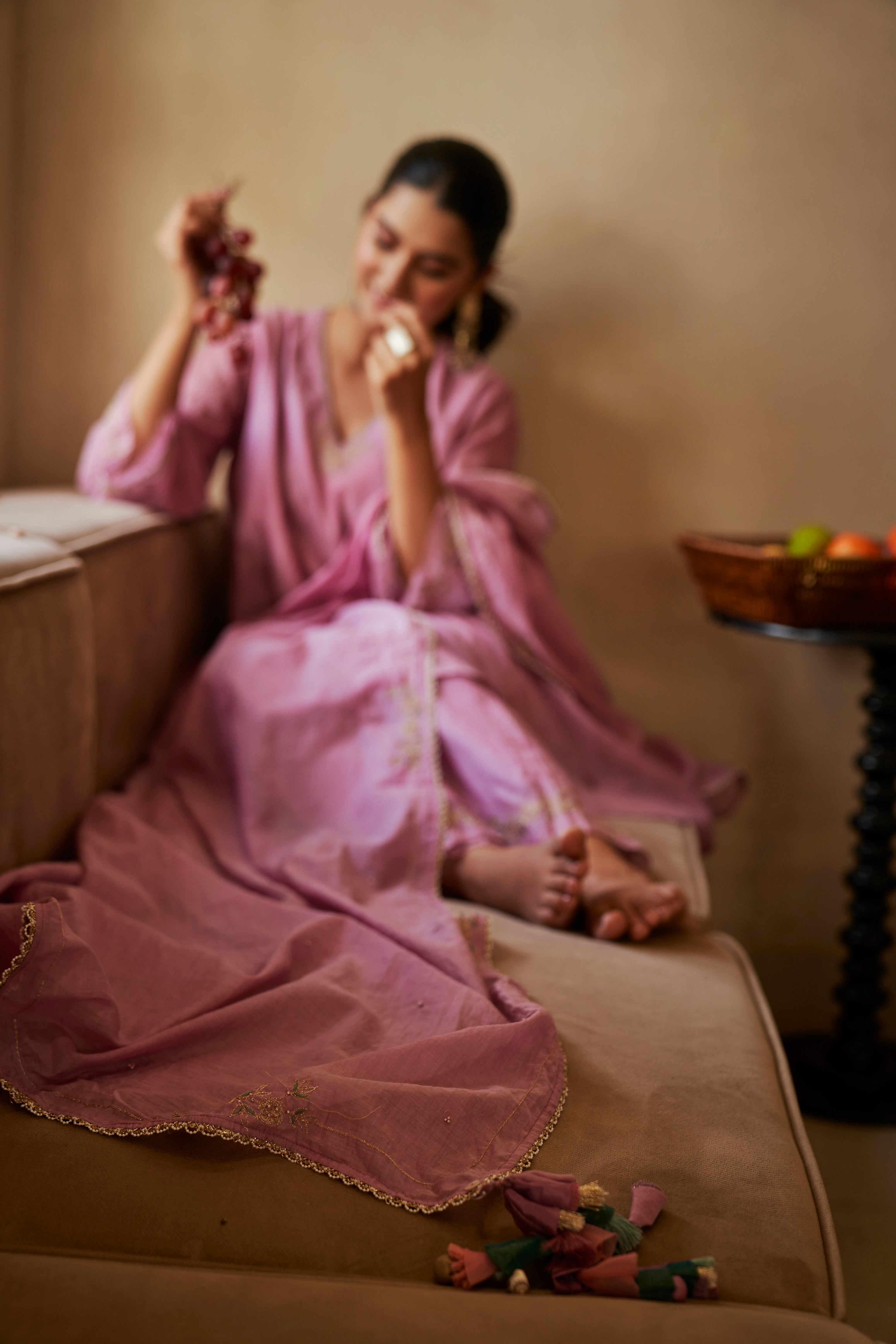 Lilac V-neck flared kurta + Palazzo + dupatta